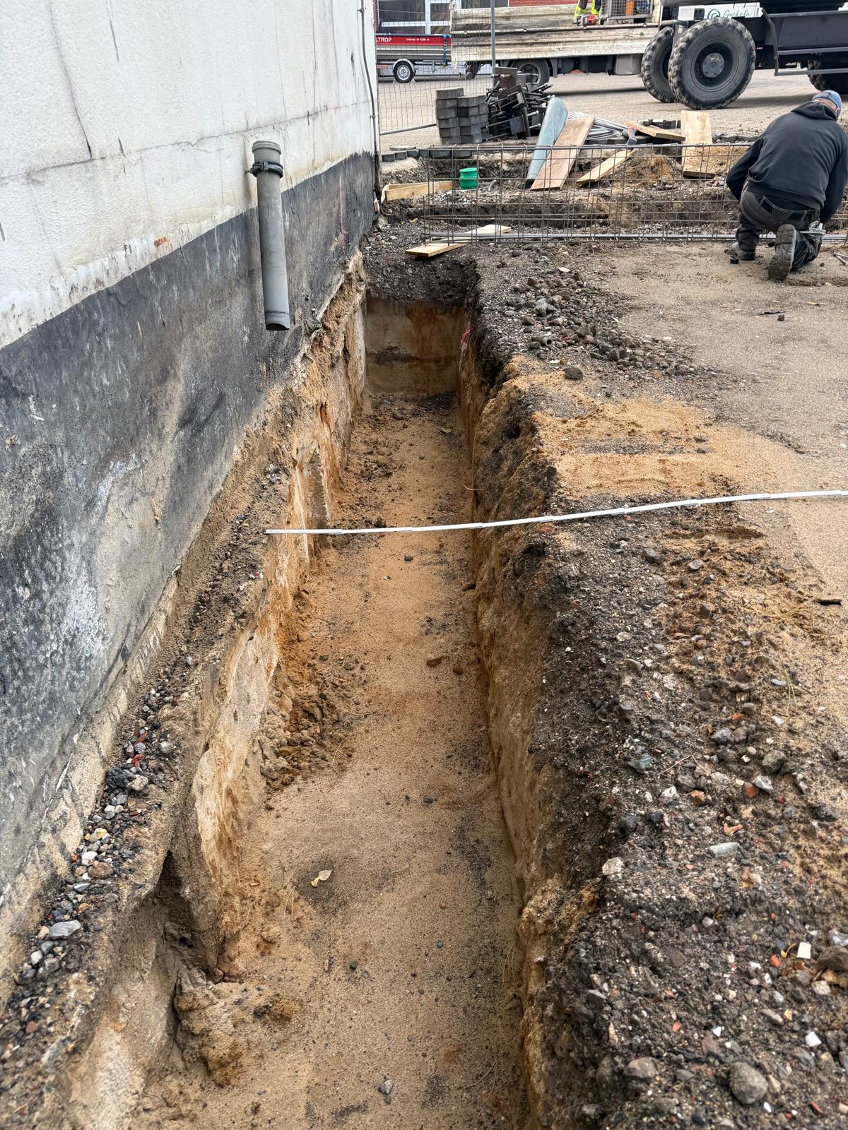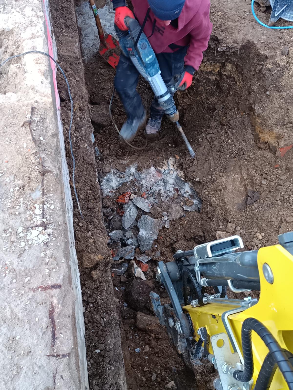 Das Ausheben von Gräben für die Verlegung von Leitungen.