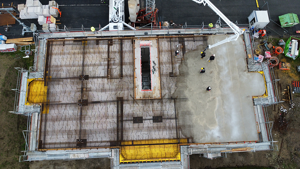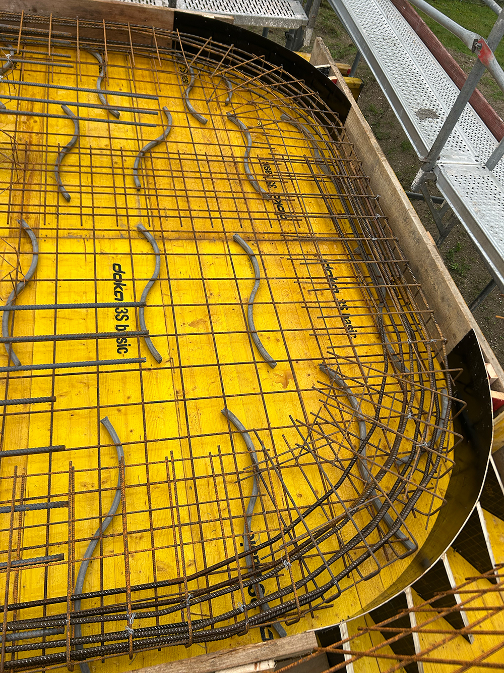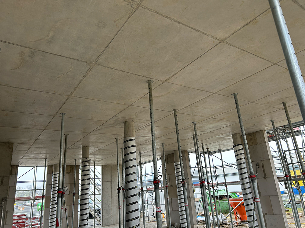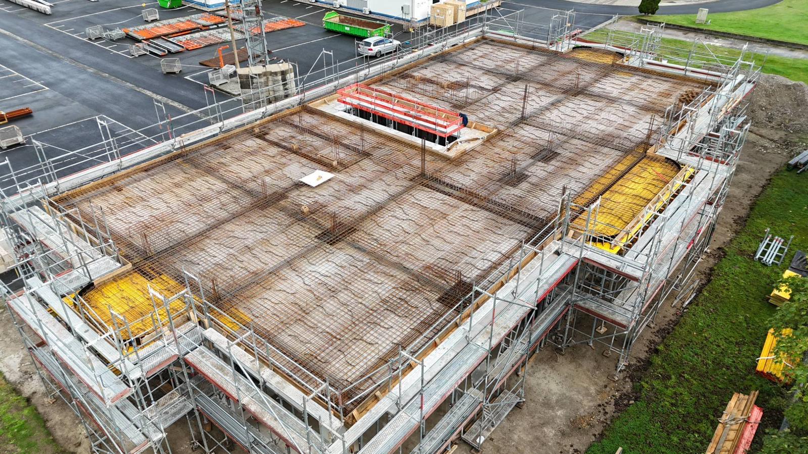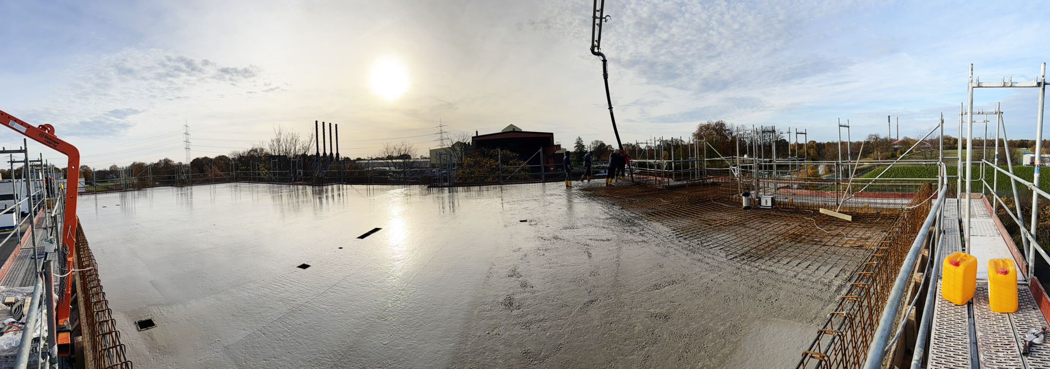 Bei diesem Projekt bestand die Herausforderung in der Erstellung der Betonwände und Betondecken in Sichtbetonqualität. Hierzu hatten wir für die Decken eine Systemschalung gewählt. An den auskragenden Bauteilen der Decke sowie den Betonaufkantungen über der OG-Decke haben wir die Kanten in runder Schalung erstellt. Die Betontreppe wurde von uns ebenfalls örtlich geschalt.